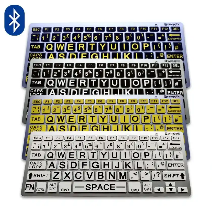 A high quality large print bluetooth wireless keyboard in a range of colours. Ideal for the visually impaired or anyone with sight problems who wants to make using their device easier.